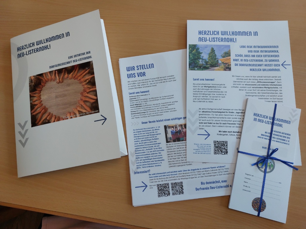 Die Neu-Listernohler sind gespannt, wie der neue Service bei den hinzugezogenen Dorfbewohnerinnen und -bewohnern ankommt. Alle „Neuen“ werden gebeten, regen Gebrauch von den Angeboten zu machen und noch fehlende Ideen gern kundzutun. Wer versehentlich keine Mappe erhalten hat, melde sich gern.